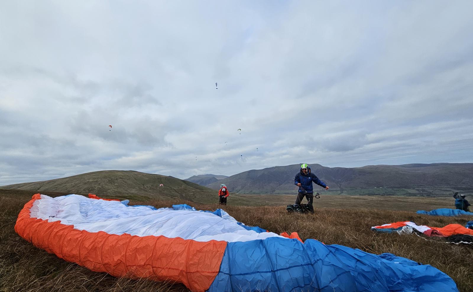 A good turn out of 20 pilots on Sunday 16th November to fly Wolf Crags. The picture shows Richard Sewell readying his Advance Iota DLS. Pic by Mike Williams