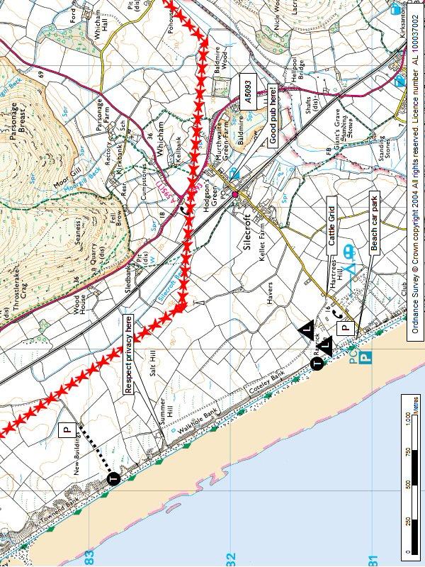 The postcode centre is the telephone box near the end of the road from Silecroft to the beach. Carry on a bit further and turn right into the car park.